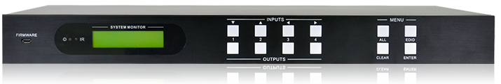 MUH44TPR2-N是一款集成HDBaseT技术的矩阵切换器,支持的输入信号有:4路HDMI视频信号、4路红外信号。支持的输出信号有:4路HDBaseT视频信号、2路本地HDMI视频信号、4路红外信号、4路数字音频信号、4路模拟音频信号;支持分辨率为4Kx2K视频信号;HDBaseT端口支持PoC功能。本产品支持EDID学习与手动设置功能,并且与远端可实现双向IR、RS232通讯。产品控制方式多样灵活,可通过配套遥控器控制、前面板按键控制、红外控制、RS232串口控制、GUI图形用户界面控制。