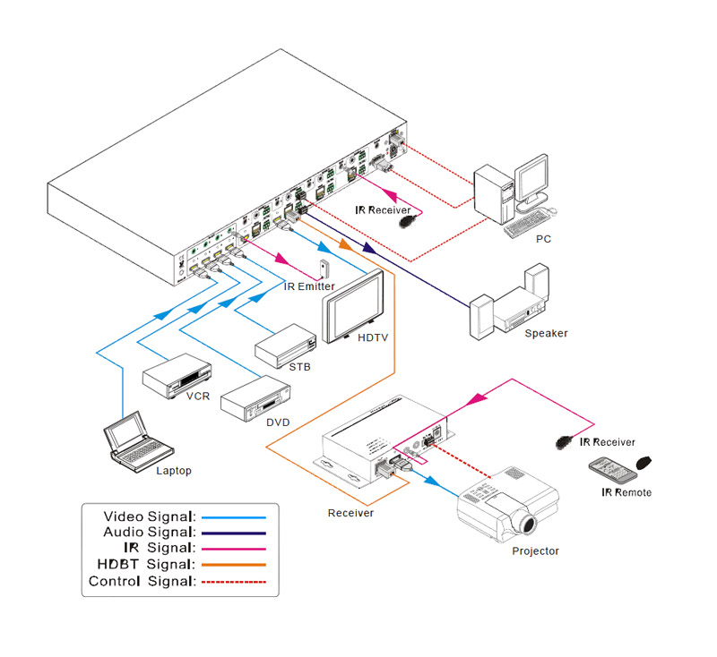 ● 支持IR双向控制:点对点控制本机、一对多控制(IR ALL IN)、多对一控制(IR矩阵)